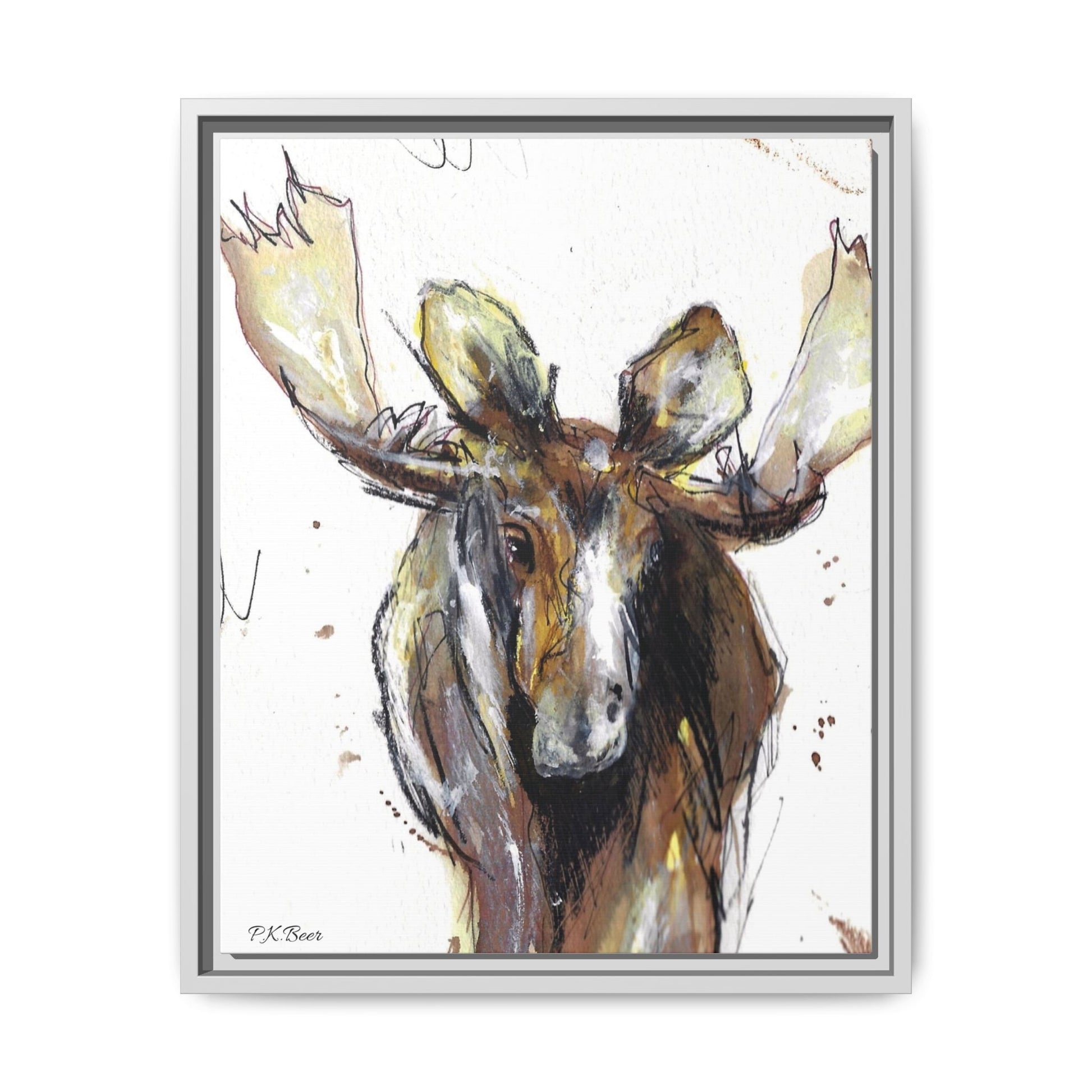 Experience the majestic beauty of RootBeer the moose captured in this artsy matte canvas print. Perfect for nature lovers and those seeking a touch of the wilderness in their home decor. Ideal for rustic or cozy themed spaces. Great for cabin owners and outdoor enthusiasts. Perfect for gifting during holidays like Christmas, Father's Day, or birthdays.